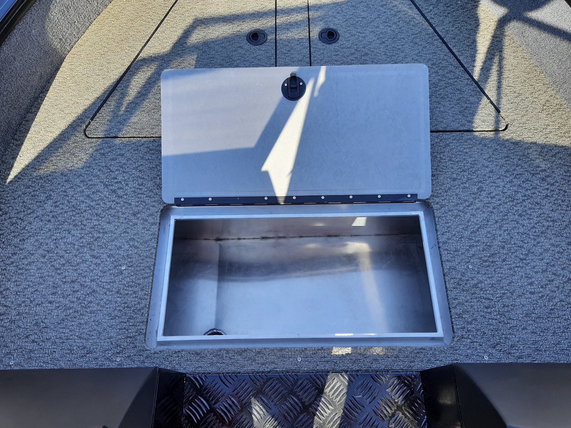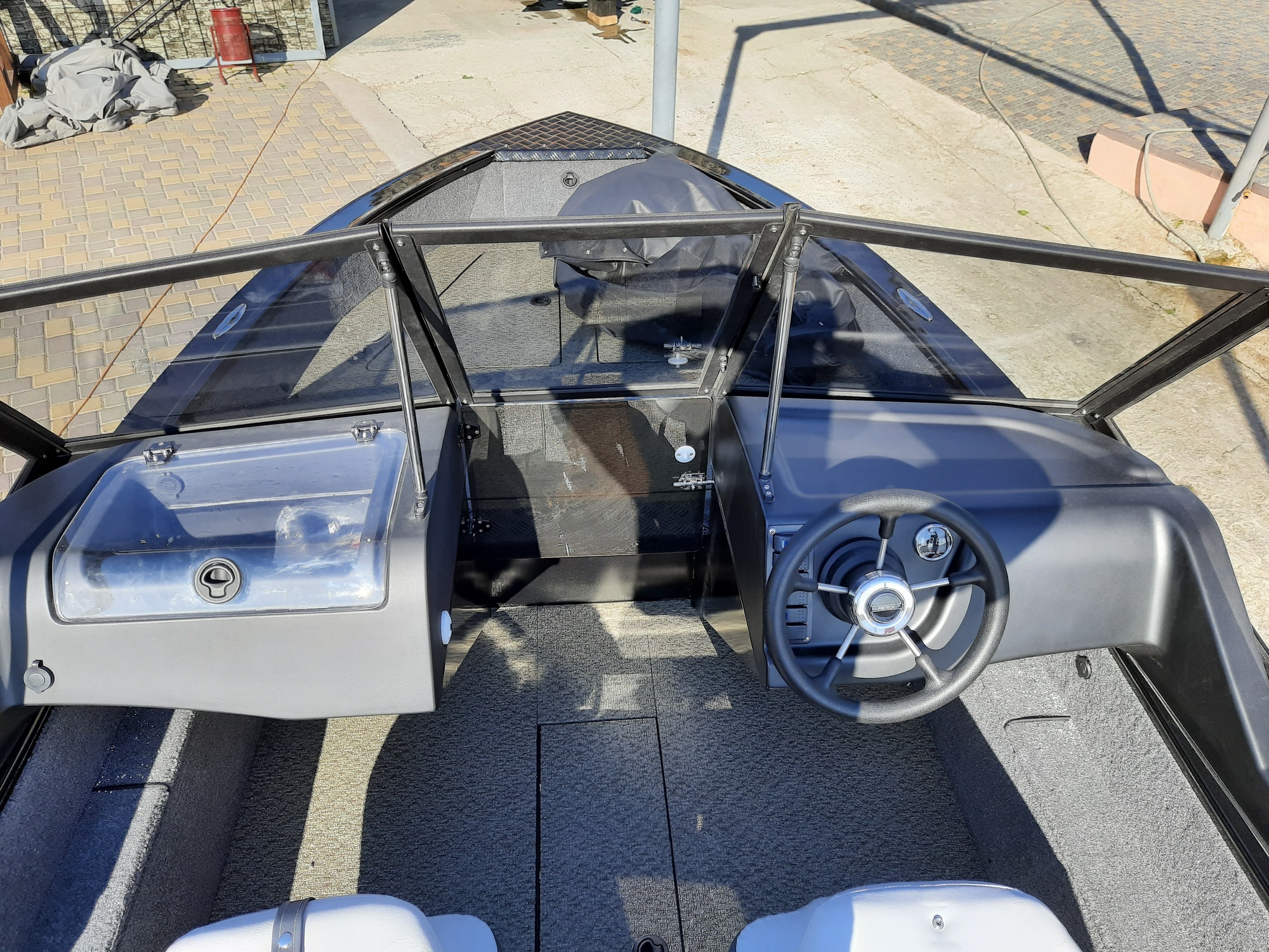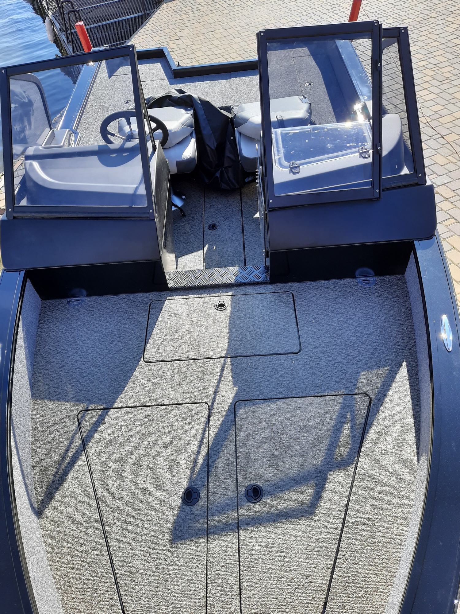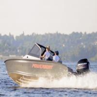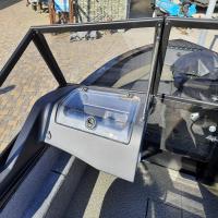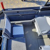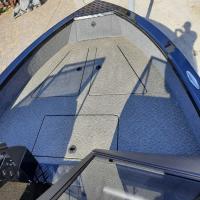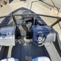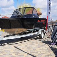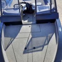 All-welded aluminum fishing boat. Deadrise transom / midship 14 ° / 24 ° Length, m 4,7 Width, m 1,97 Transom height, m 0,51 Max power, hp 115 Body / bottom thickness, mm 3 / 3 Lifting capacity, kg 500 Passenger capacity 4 Weight, kg 470