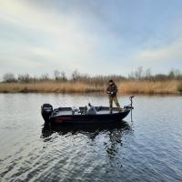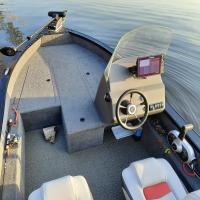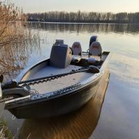 All-welded aluminum fishing boat. Deadrise transom / midship 11,7 ° / 17 ° Length, m 4,8 Width, m 1,86 Transom height, m 0,51 Max power, hp 60 Body / bottom thickness, mm 3 / 3 Lifting capacity, kg 460 Passenger capacity 4 Weight, kg 430